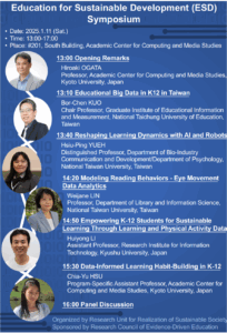 Abstract: Education plays a crucial role in realizing a sustainable society. This symposium will focus on the practical implementation of Education for Sustainable Development (ESD), inviting leading researchers in educational data utilization, particularly in learning analytics. The symposium will explore how systems for collecting and analyzing educational data can be leveraged to improve education and implement data-driven approaches. Through discussions on “Sustainable Development of Education” and “Education for Sustainable Development”, we aim to identify concrete strategies that enhance education’s role in fostering a sustainable society.